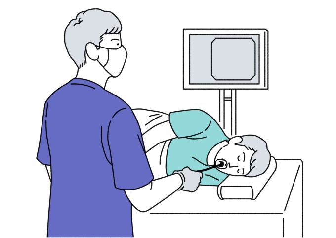 当院では口からカメラを入れる経口胃カメラ検査だけではなく、鼻からカメラを挿入する経鼻胃カメラ検査も行っております。「オエッ」となるおう吐反射は、カメラが舌の付け根を圧迫することによって起こりやすくなりますが、鼻からカメラを入れると「オエッ」となりにくく、つらさを軽減できます。